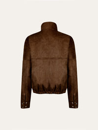 High-neck cargo jacket in brown suede