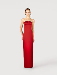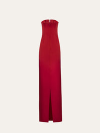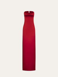 Strapless maxi dress with bow in red satin